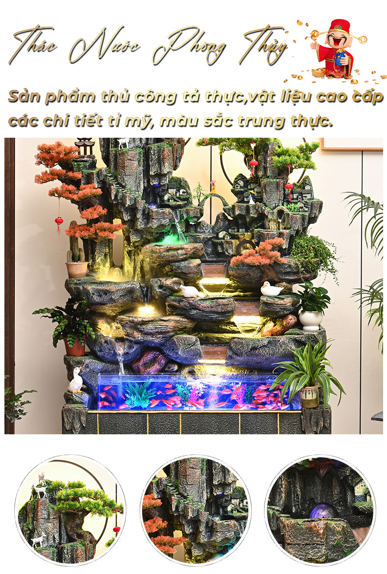 🌟 Sản phẩm bao gồm: Thác Nước Hòn non bộ, các tiểu tiết trang trí, máy bơm nước công suất lớn, ngọc châu Phong Thủy Luân, bánh xe Bát Bửu và vòng đèn led, đặc biệt tặng kèm máy tạo khói siêu lớn.